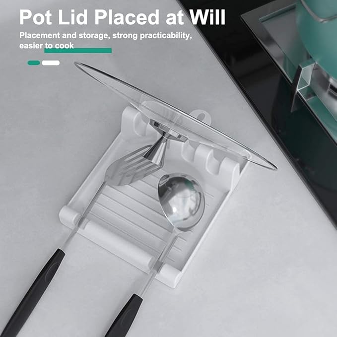- 4 + 2 Multiple Slots Unique Design: It is a Multifunction Kitchen Spatula Rack with a Lid Holder, utensil rest & pot lid holder stand. Two-sided design is adaptable to be used, to hold multiple cooking utensils.