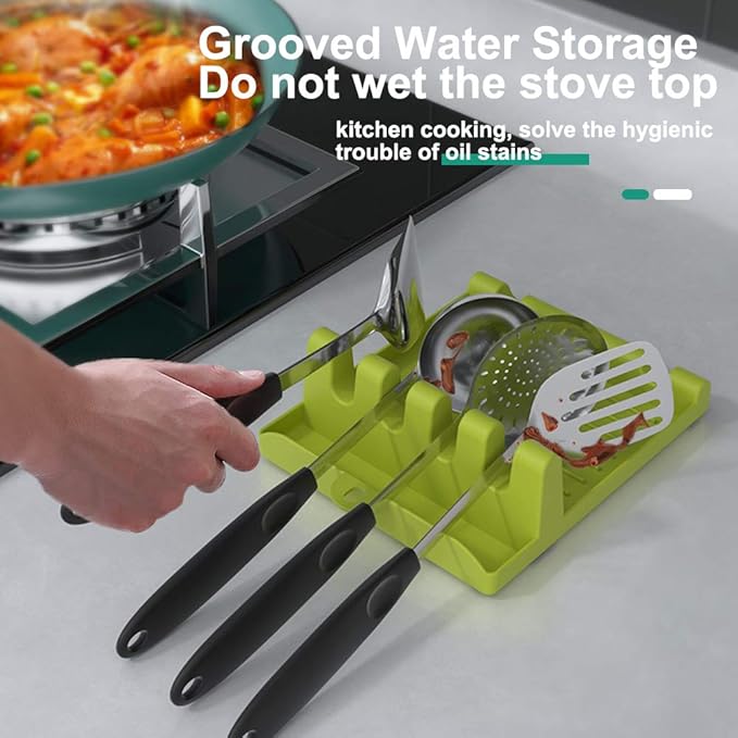 - 2 Pack of Utensil Rest: You will get white and green kitchen utensil rests, for holding your multiple utensils, or share one with your friends and family.