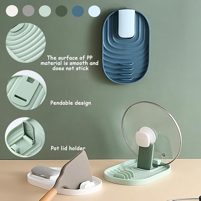 - 【Eco-Friendly Fabric】Made of premium PP material, the pot lid rest is sturdy, strong and durable for lifetime using, long-lasting. And the surface is smooth and not tied, suitable for countertops and glass stoves. The foldable design of the spoon rest allows you to place spatulas, spoons and small pot lids at any time during cooking.