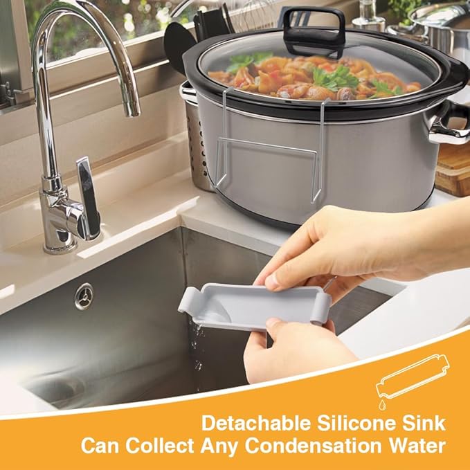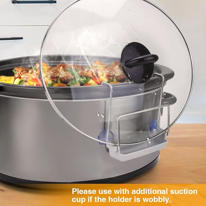 - Reinforced Structure - The slow cooker lid holder is made with high-quality stainless steel and silicone material, sturdy and long-lasting. Reinforced structure support the lid stably, you can use the rack at ease.